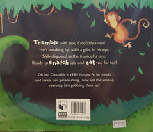 Tremble with fear, crocodile's near. He's sneaking by, with a glint in his eye, slyly disguised as the trunk of a tree, ready to snatch and eat you for tea! Oh no! Crocodile is very hungry. As he sneaks and creeps and prowls along, how will the animals ever stop him gobbling them up?
